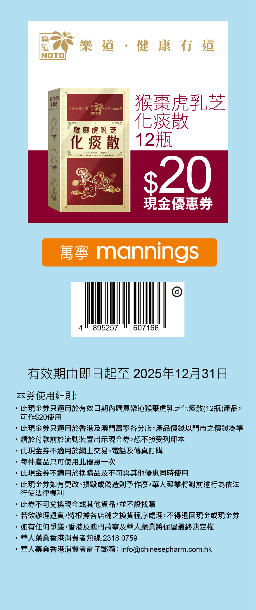 猴棗虎乳芝化痰散$20 優惠劵