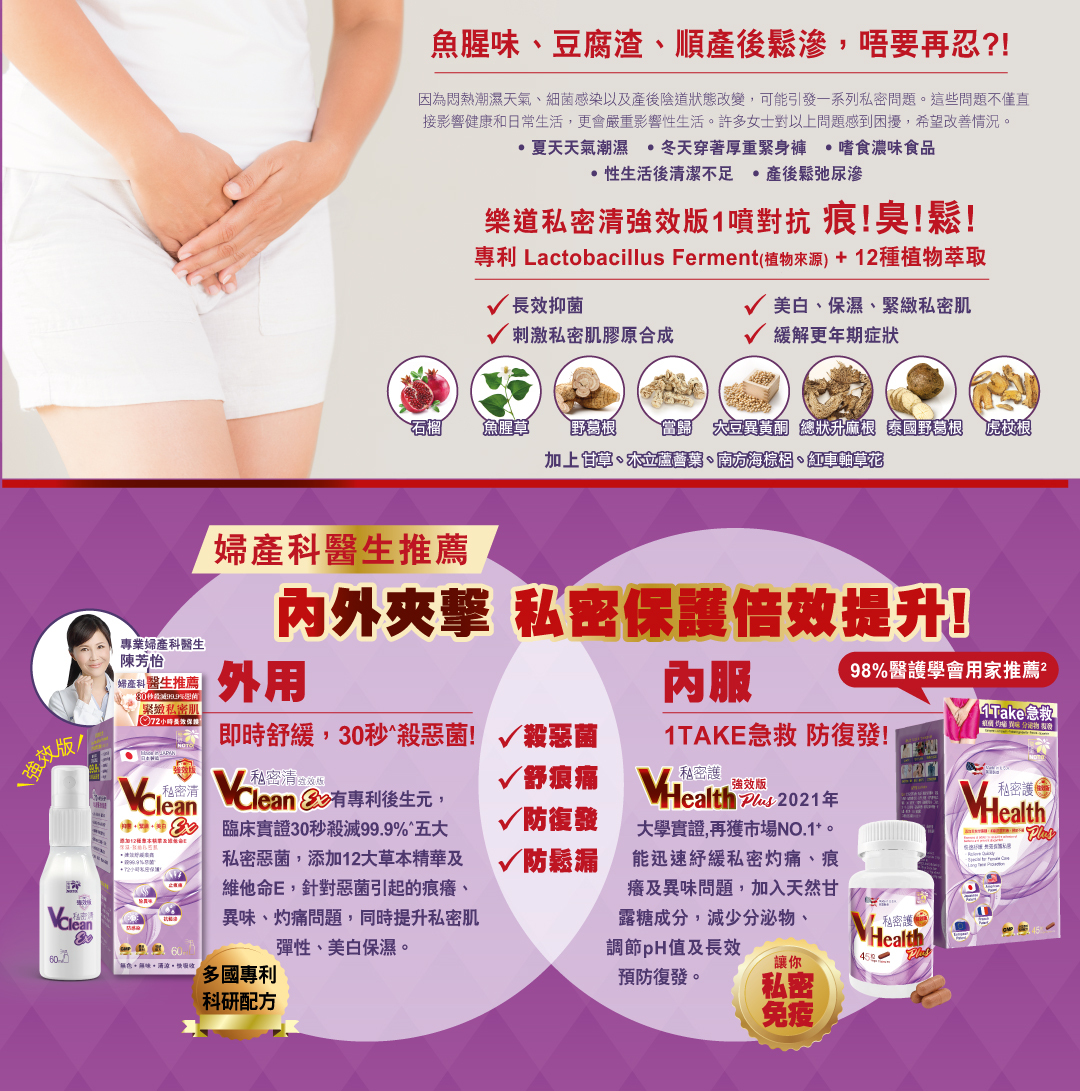 •抑菌、美白、保濕、緊緻私密肌
