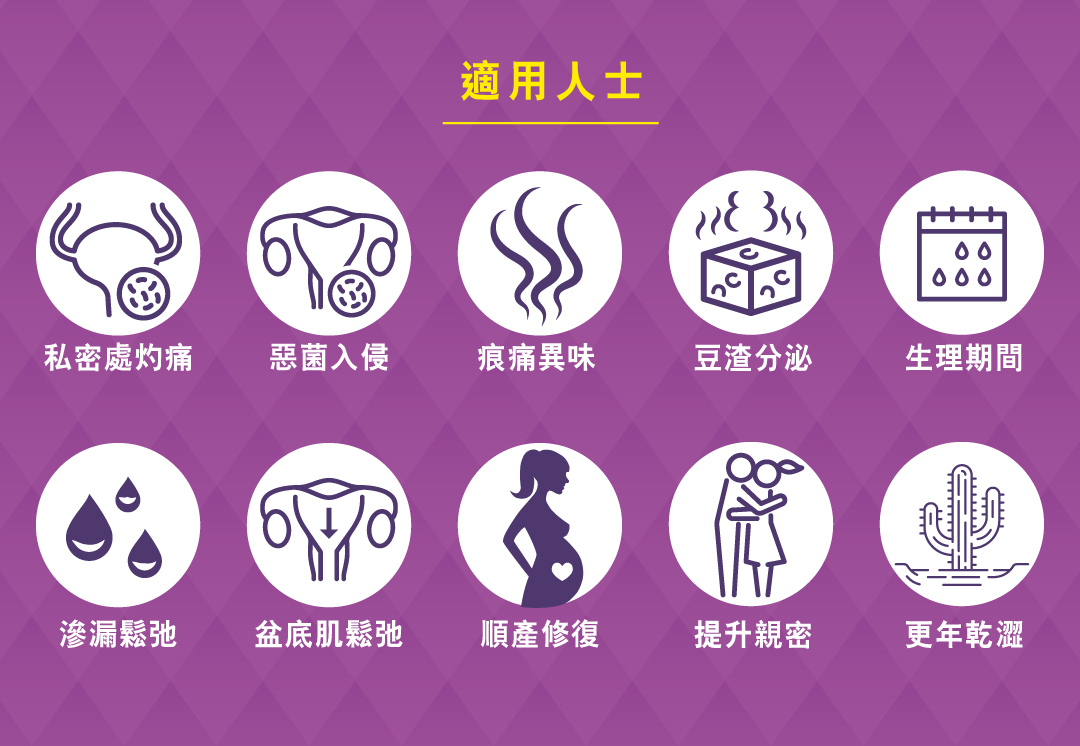 解決因陰肌鬆弛而產生的滲漏及親密問題,讓用者重拾18歳的年輕自信感。