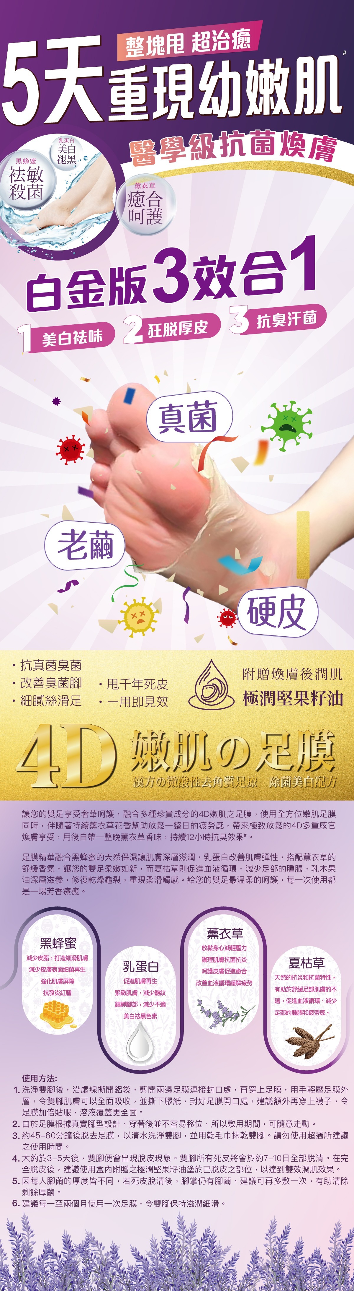 讓您的雙足享受奢華呵護,融合多種珍貴成分的4D*嫩肌之足膜