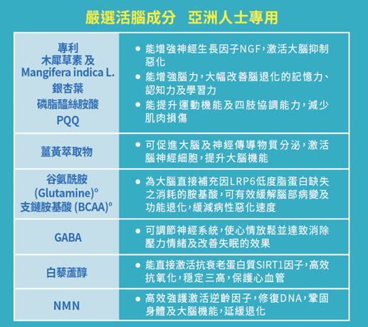 ~增強神經生長因長NGF,激活大腦抑制惡化