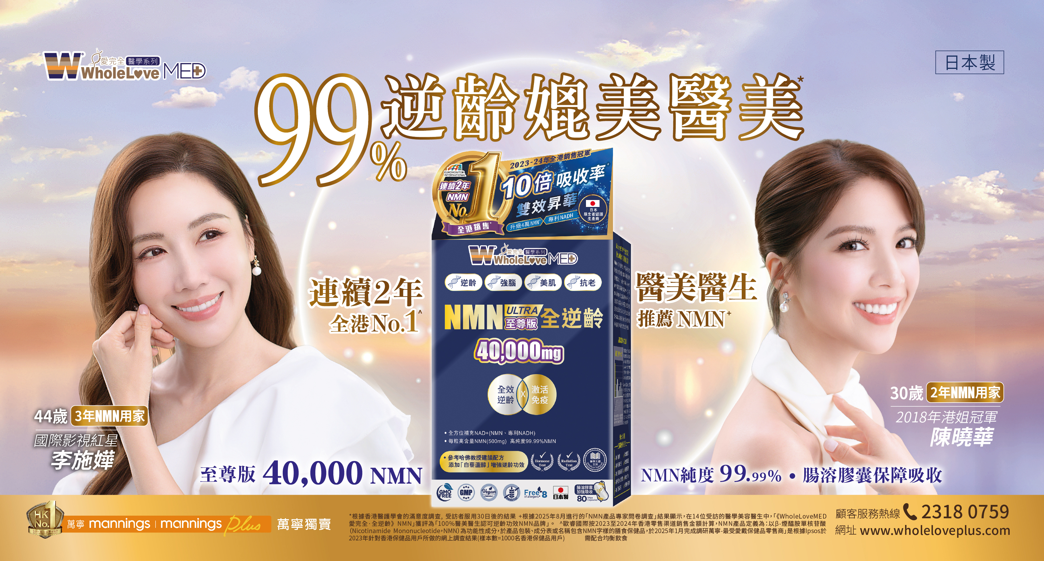 歐睿國際按2023至2024年香港零售渠道銷售金額計算,NMN產品定義為:以β-煙醯胺單核苷酸 (Nicotinamide Mononucleotide,NMN) 為功能性成分,於產品包裝、成分表或名稱包含NMN字樣的膳食保健品,於2025年1月完成調研。