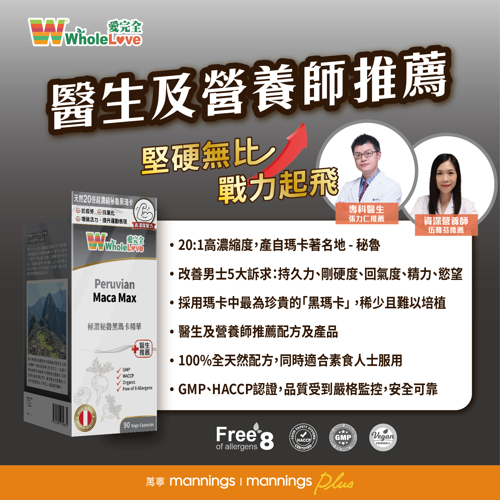 採用瑪卡中的極品「秘魯黑瑪卡」,濃縮度達至20倍極致,提升戰力刻不容緩,補足幸福,安全不摧谷。有助改善身體機能,同時提升剛硬度及持久力,激發男士雄性潛能,盡顯雄性風采。