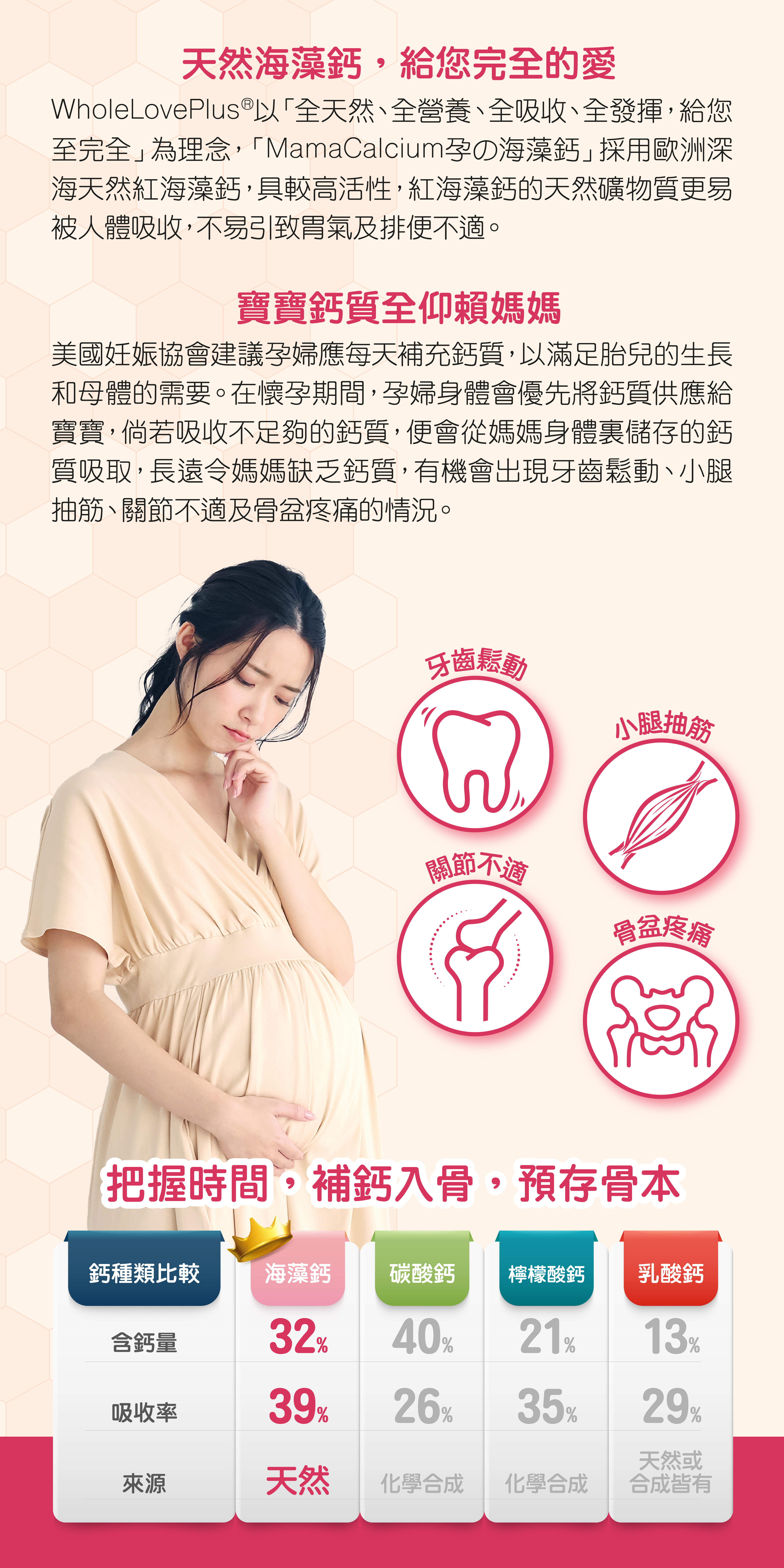 • 孕婦金三角鈣配方:補骨鈣、促消化、助育腦