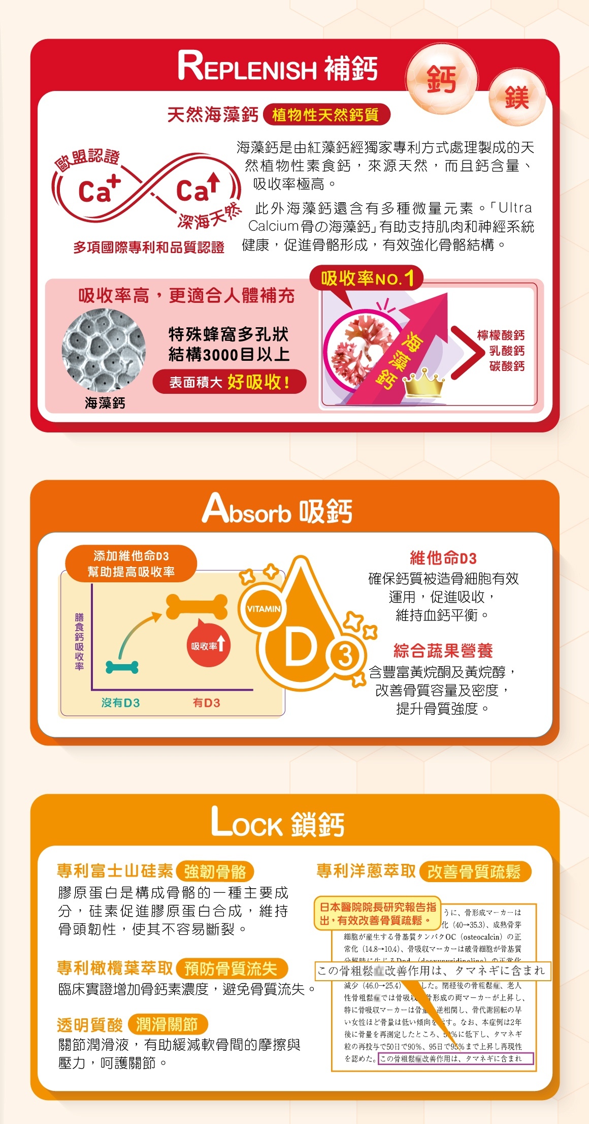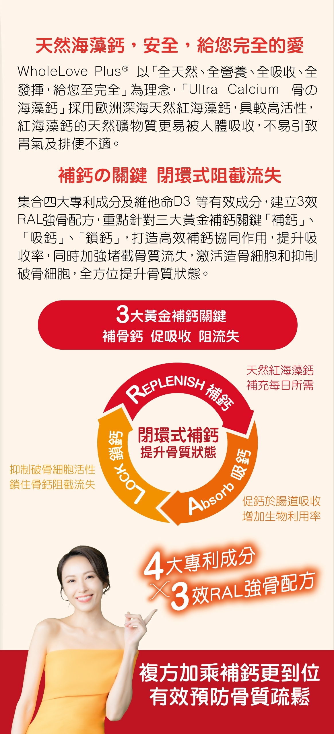 • 3效RAL強骨配方,補骨鈣、促吸收、阻流失