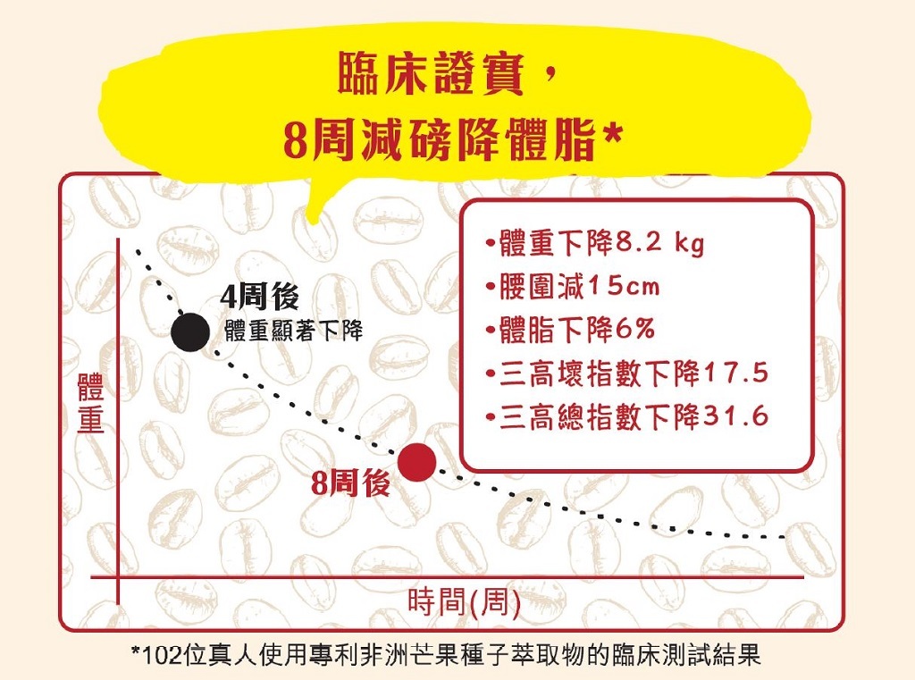 *102位真人使用專利非洲芒果種子萃取物的臨床測試結果