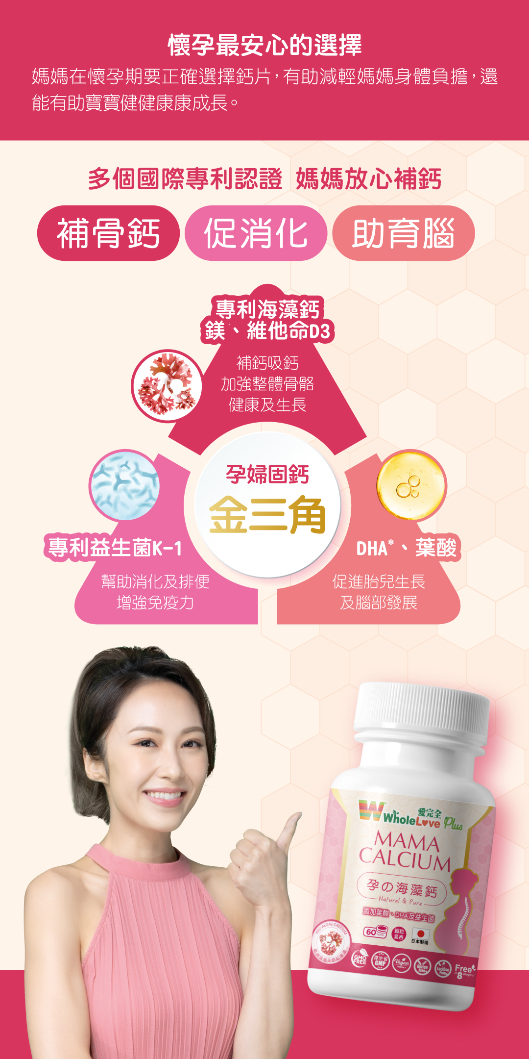 • 孕婦金三角鈣配方:補骨鈣、促消化、助育腦